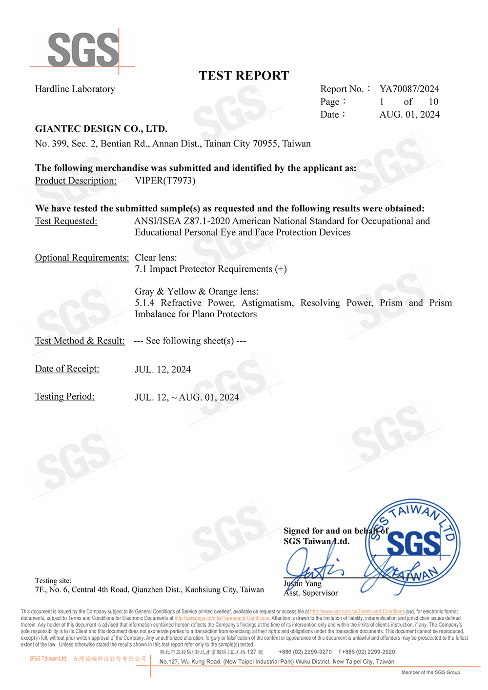 VIPER戰術安全眼鏡符合美國ANSI / ISEA Z87.1-2020標準、美國軍用標準MIL-PRF-32432A:2018撞擊測試,以及CNS 7177 Z2034撞擊與防霧測試,並取得台灣經濟部標準檢驗局M63966商品認證,展現ZIV在高防護性眼鏡領域的技術實力。