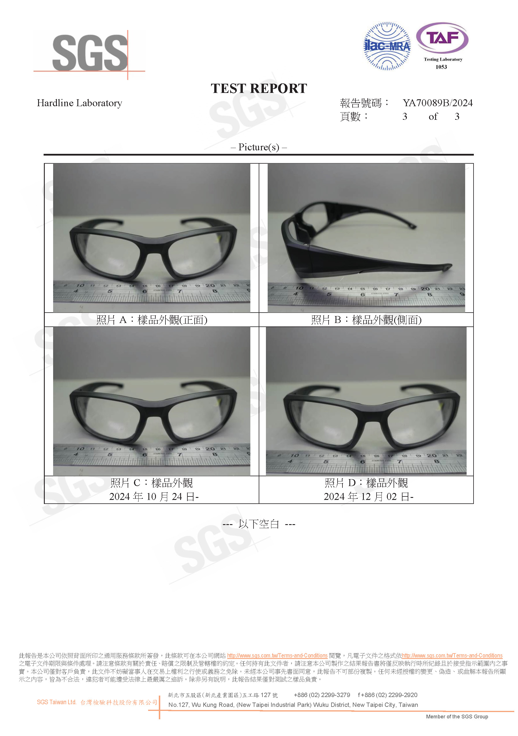 安全眼鏡型體通過測試
